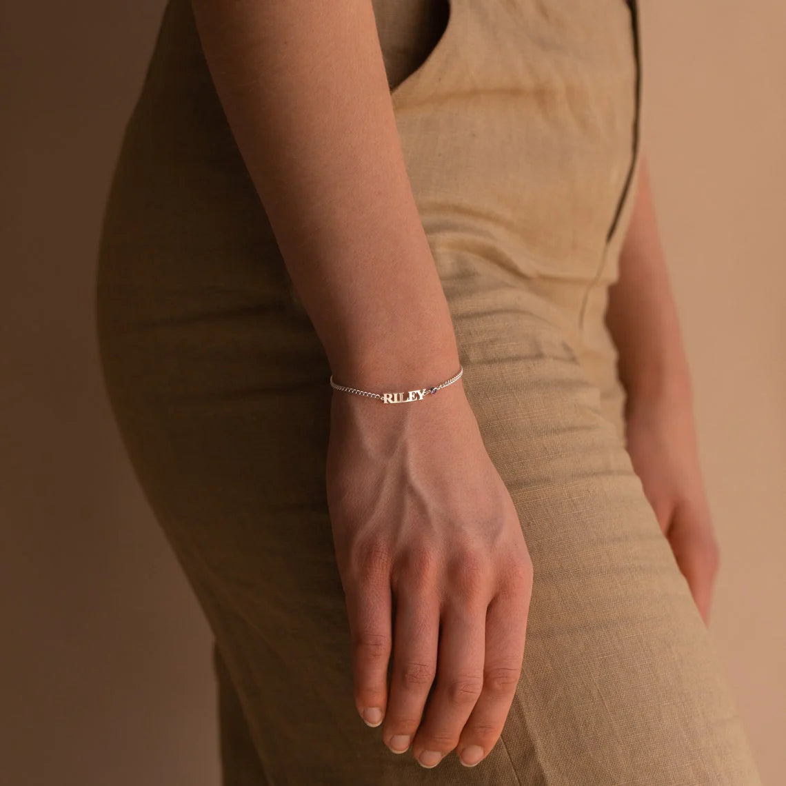Elevate your personal style with this Custom Curb Chain Name Bracelet, a sophisticated piece that merges timeless design with meaningful personalization. Crafted with a sturdy curb chain construction, this bracelet offers both durability and an elegant aesthetic that complements any wardrobe. The custom nameplate allows you to showcase your identity or honor someone special, making it an ideal gift for milestones, celebrations, or everyday wear. Whether layered with other pieces or worn solo, this versatile bracelet delivers a polished, professional look that transcends trends.