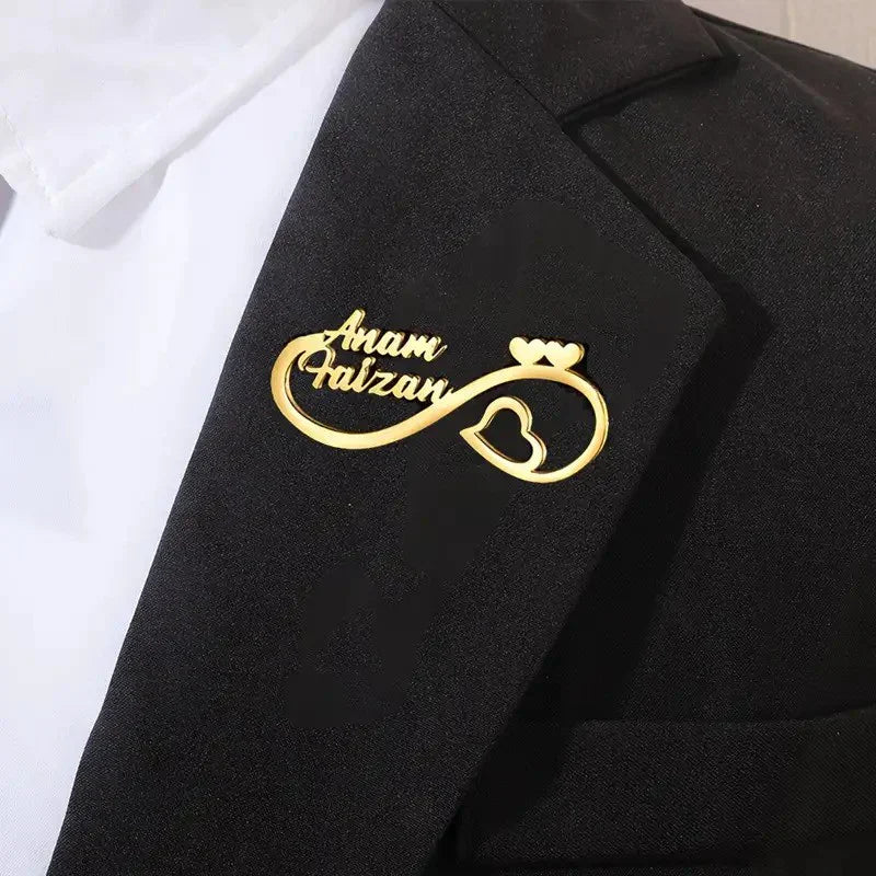 "Show off your unique style with our Custom Double Name Heart Brooch – a perfect blend of love and personalization! Add your names for a truly special, one-of-a-kind accessory."
