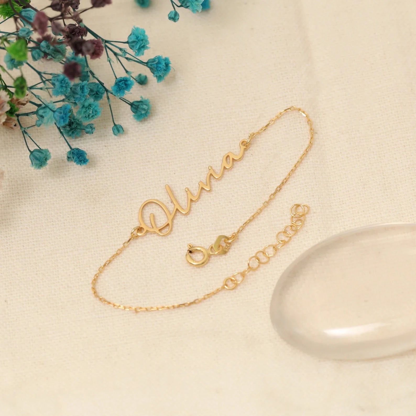 Elevate your gifting game with our Gold Plated Custom Name Bracelet. Perfect for birthdays, Valentines Day or as a thoughtful friendship or Mother's Day gift. Personalize with a name for a one-of-a-kind piece. Made with quality materials and expert craftsmanship. Show your love with this elegant and unique bracelet.