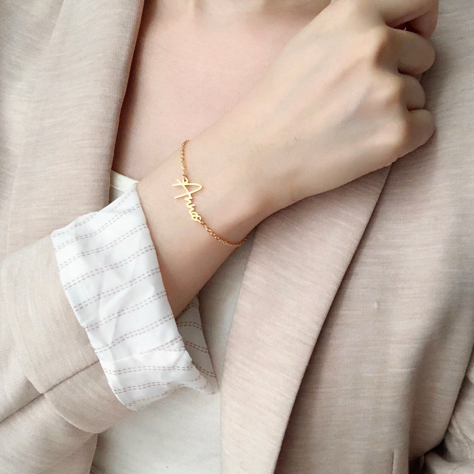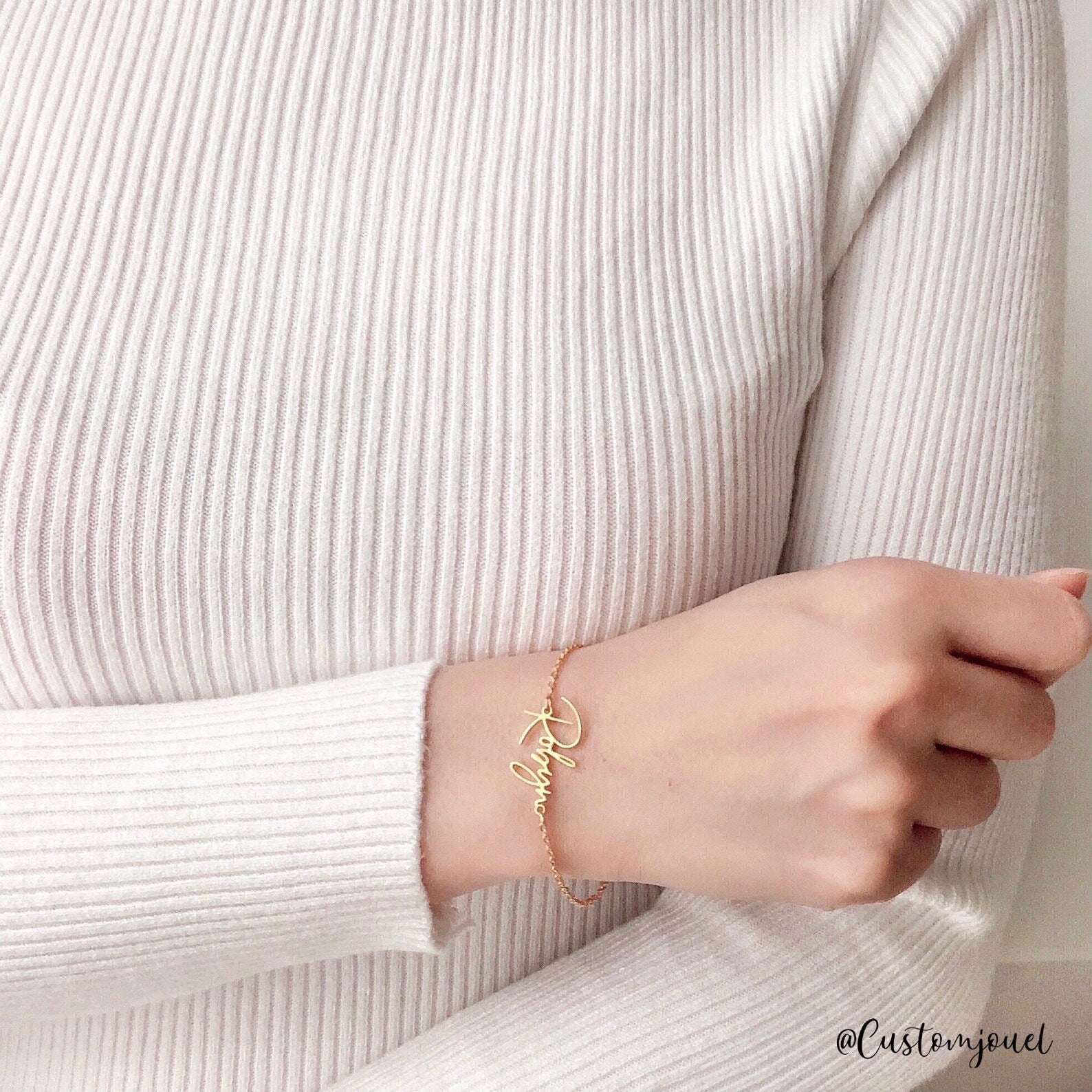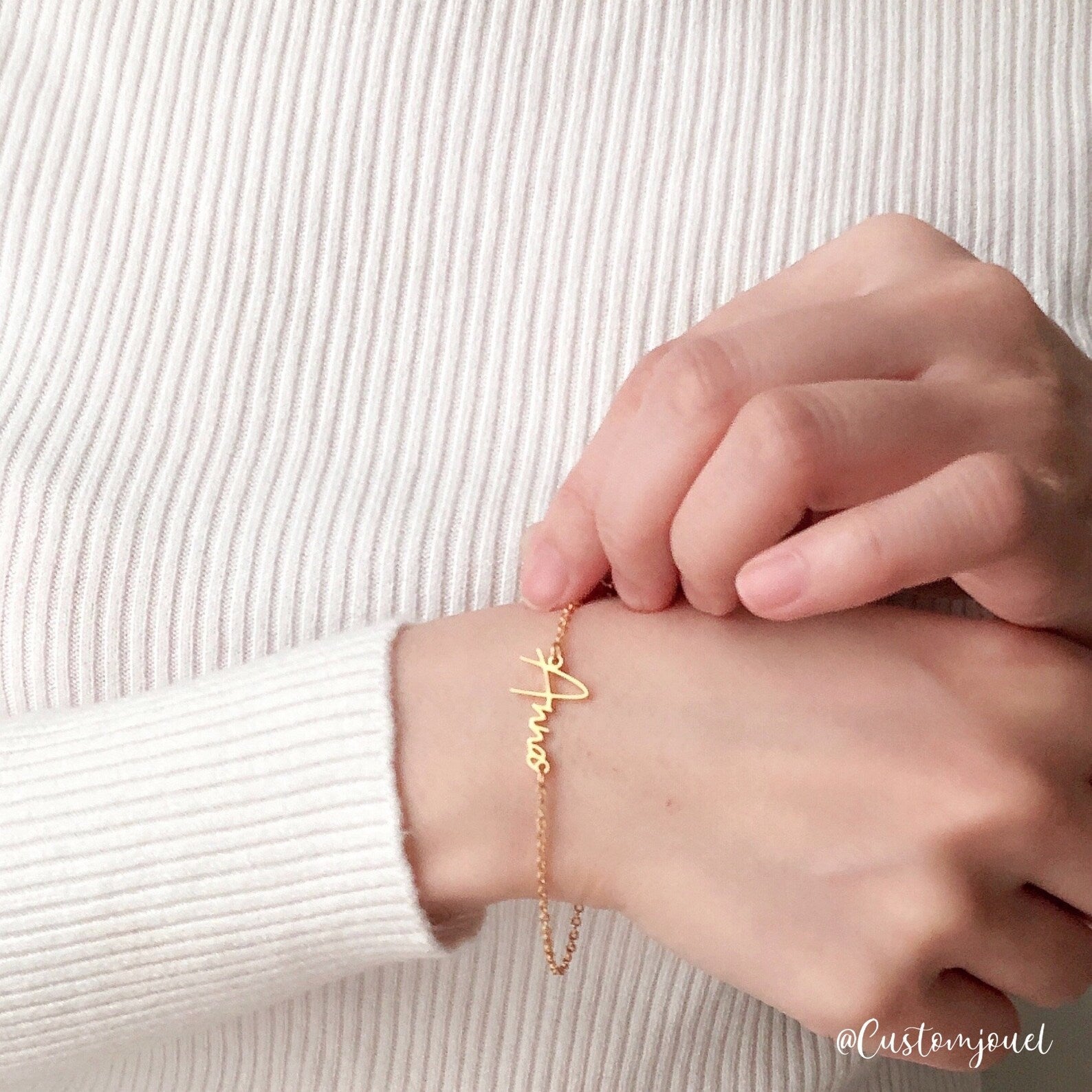 Elevate any outfit with our Personalised Bracelet. Customise it with your name, initials, or a special message. A thoughtful gift for her on any occasion, or a heartfelt memorial gift. Handcrafted with care, this Nameplate Bracelet is a unique and personal accessory that will be treasured for years to come.