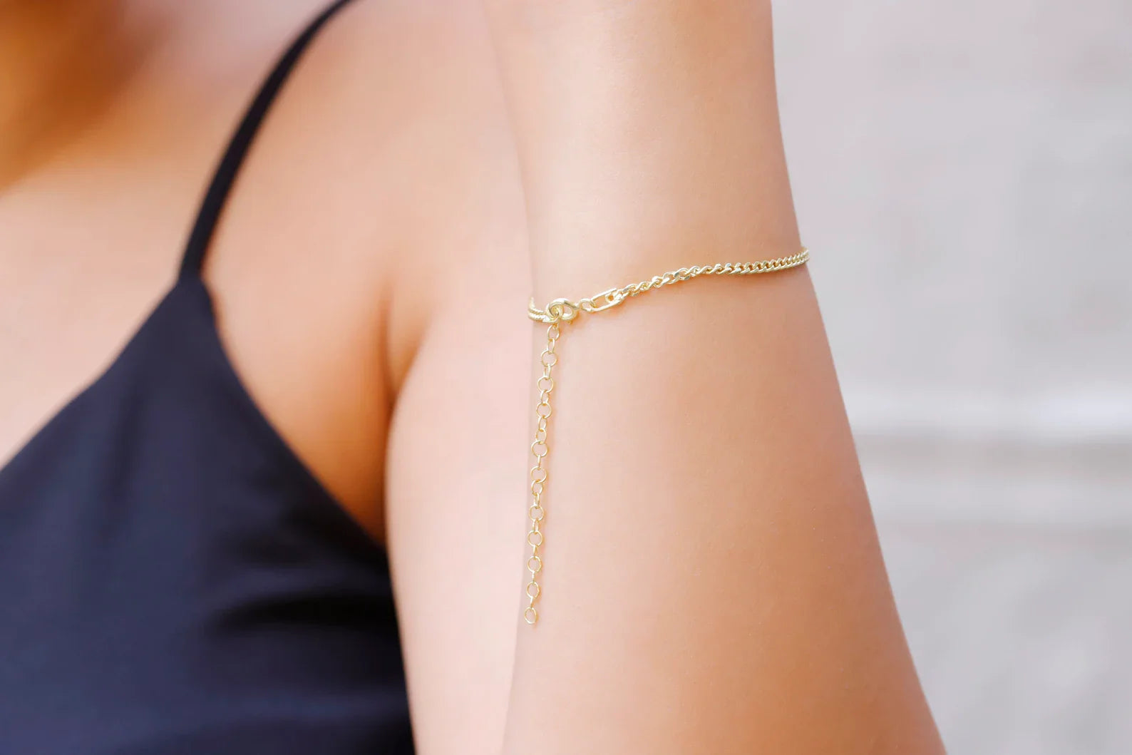 This Personalized Tiny Interlocking Two Initials Bracelet is perfect for those who love dainty and customized jewelry. Made with a beautiful gold letter design and a custom curb chain, this bracelet can be personalized with two initials to make it truly unique. A perfect gift for any occasion.